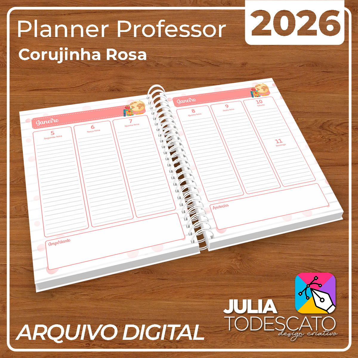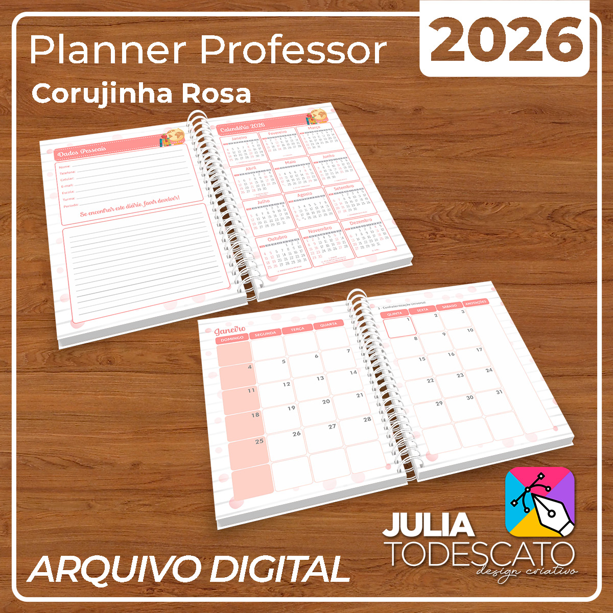 Arquivo Digital – Planner Professor 2026 | CORUJINHA ROSA